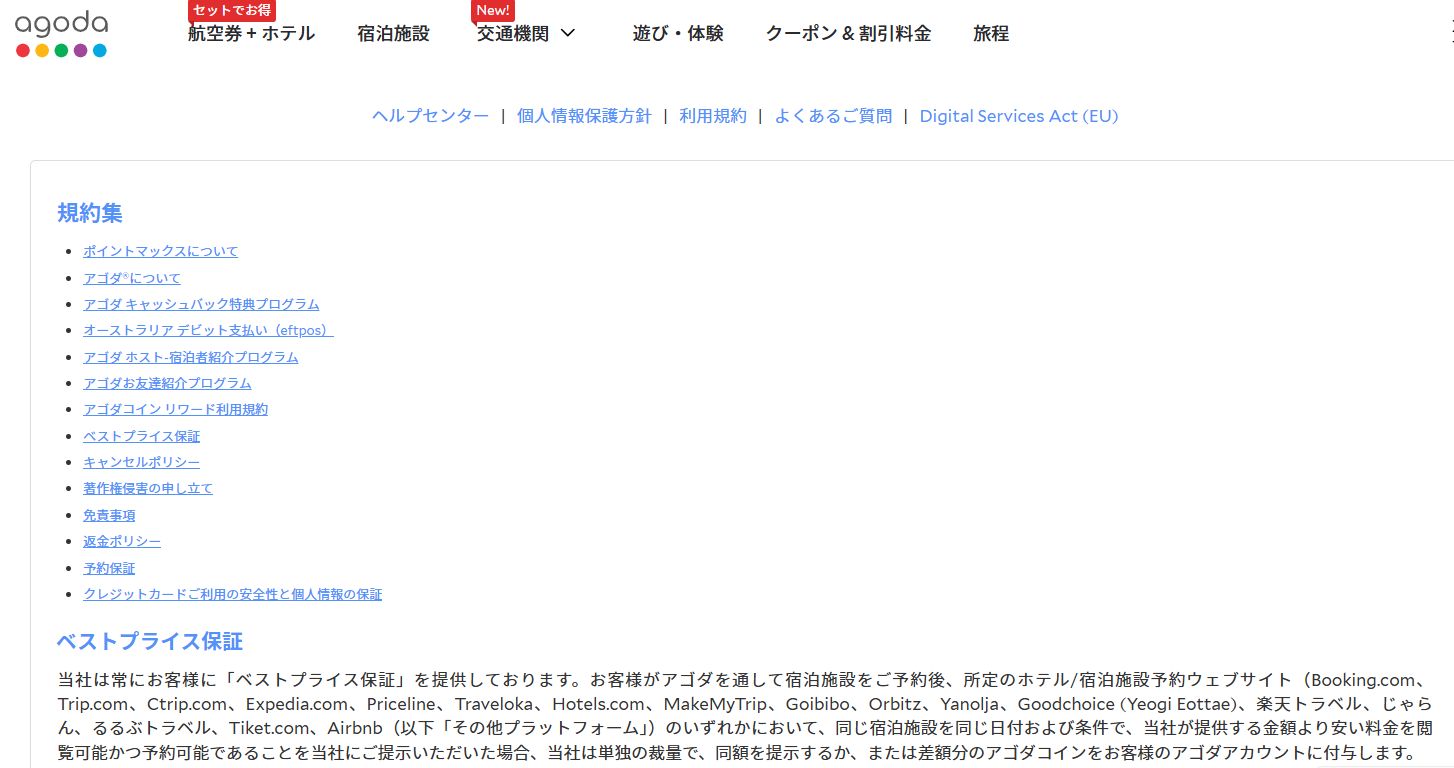 アゴダの運営会社概要、ベストプライス保証、個人情報保護方針などを掲載。公式発表に基づいた正確な内容が確認でき、利用者が安心して予約できる環境づくりを支えています。