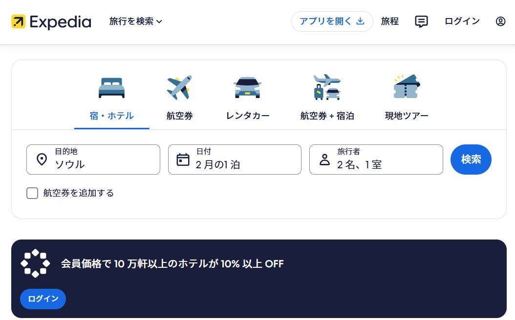 Expediaは、「価格保証プログラム(Price Guarantee)」を以前提供していましたが、現在では一部地域やプランに限定されています。代わりに、Expediaは「アプリ限定価格」や「メンバー限定割引」に力を入れており、これにより他社より安い料金を提供する形へとシフトしています。ホテル単体での価格保証よりも、「航空券+ホテルセット割」での総額割引を重視しており、個別比較よりも総合コストの削減を目指す方向性です。そのため、単純な最低価格保証というよりも、旅行全体のコストパフォーマンスに焦点を当てています。