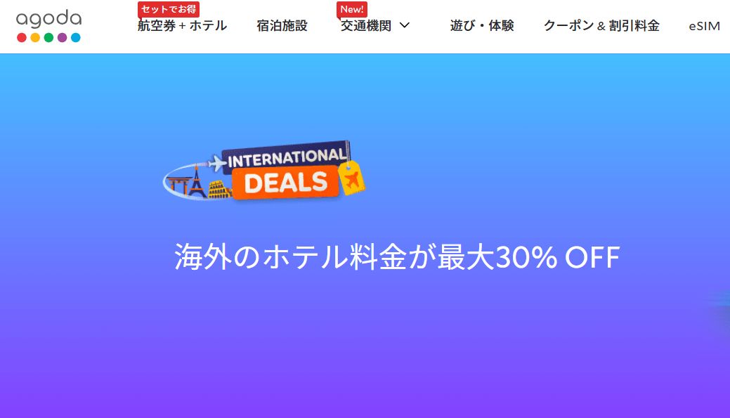 | agoda | VIP Platinum | 最大25%割引、特典付きプラン | アジア圏に強く、アプリ限定割引が多い |