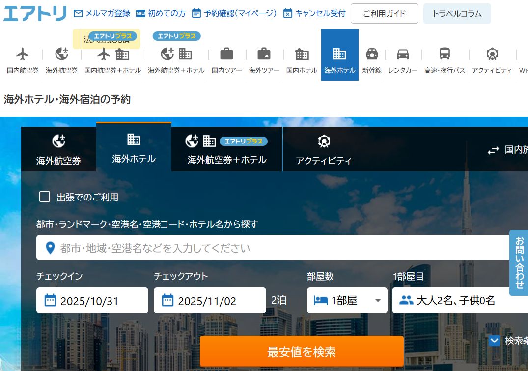 ExpediaとHotels.comは、グローバルホテルチェーンに強く、航空券と宿泊をまとめて予約する「パッケージ割」が充実しています。