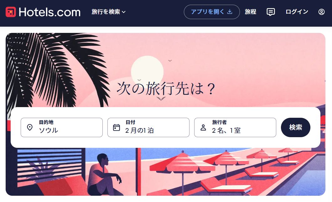 Hotels.comも同様に、かつては「ベストプライス保証」を行っていましたが、現在はExpediaと同様のグループ戦略に移行しています。現在の主軸は「メンバー価格」と「Hotels.com Rewards」による割引です。特にリワード会員になることで10泊ごとに1泊無料の特典を受けられるため、長期的に見ると他社よりも費用を抑えられるケースが多くなります。公式として明確な「最低価格保証」は撤廃されているものの、会員向けの特別料金やアプリ専用クーポンを活用すれば、実質的な最安価格を確保できる構造です。