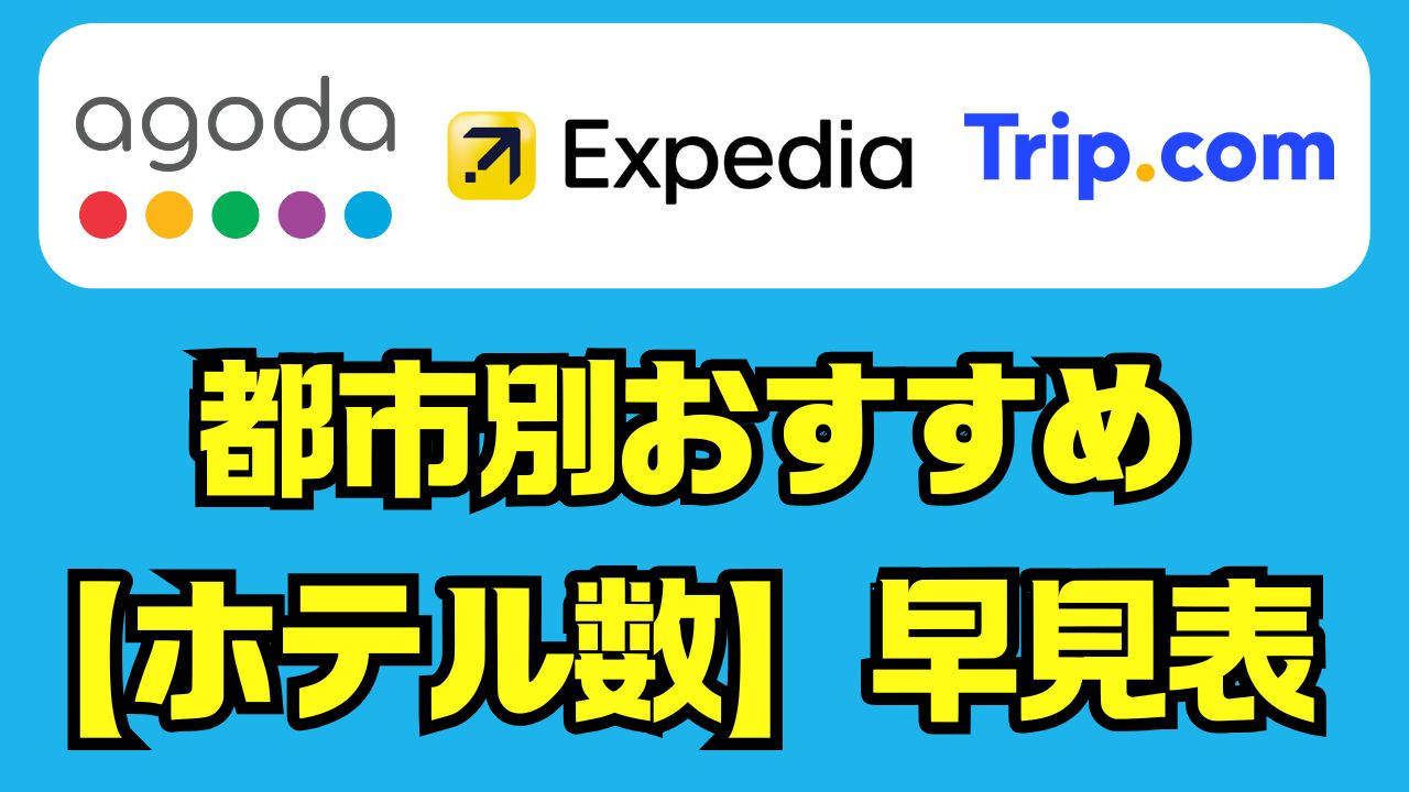6つの主要ホテル予約サイト(Agoda、Booking.com、Expedia、Hotels.com、Trip.com、楽天トラベル)の比較をもとにした