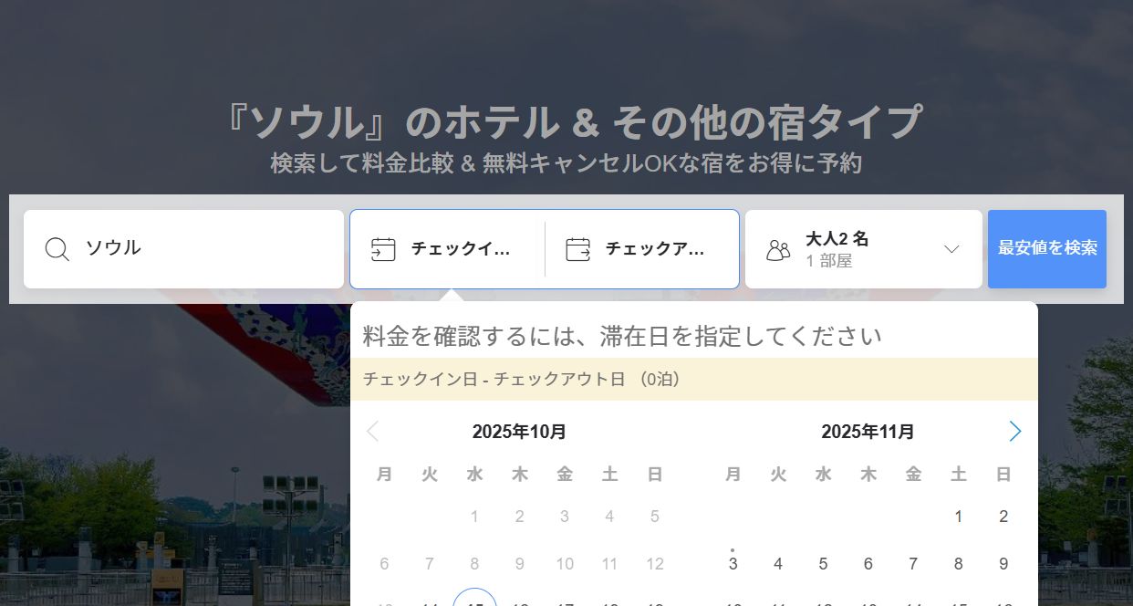 韓国市場の特徴として、モバイル経由の予約比率が高いことが知られています。Agodaがアプリ限定施策を積極的に出す土壌が整っており、ログイン後の非公開価格と組み合わさると、他サイトより一段安くなる場面が多く見られます。特に中価格帯のビジネスホテルやレジデンス型施設では、連泊割や直前割との相性がよく、週末を外した平日2〜3泊で総額の底が現れやすくなります。